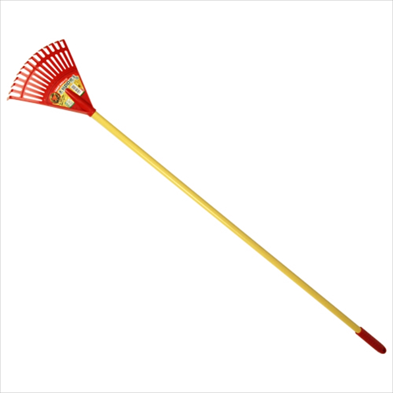 木々の間や狭い場所の掃除に最適な小型タイプです。PP樹脂製でコシがやわらかすぎず、しっかり対象物を集めます。平爪タイプで対象物を効率良く集めます。持ちやすく作業しやすいグリップ付きです。
