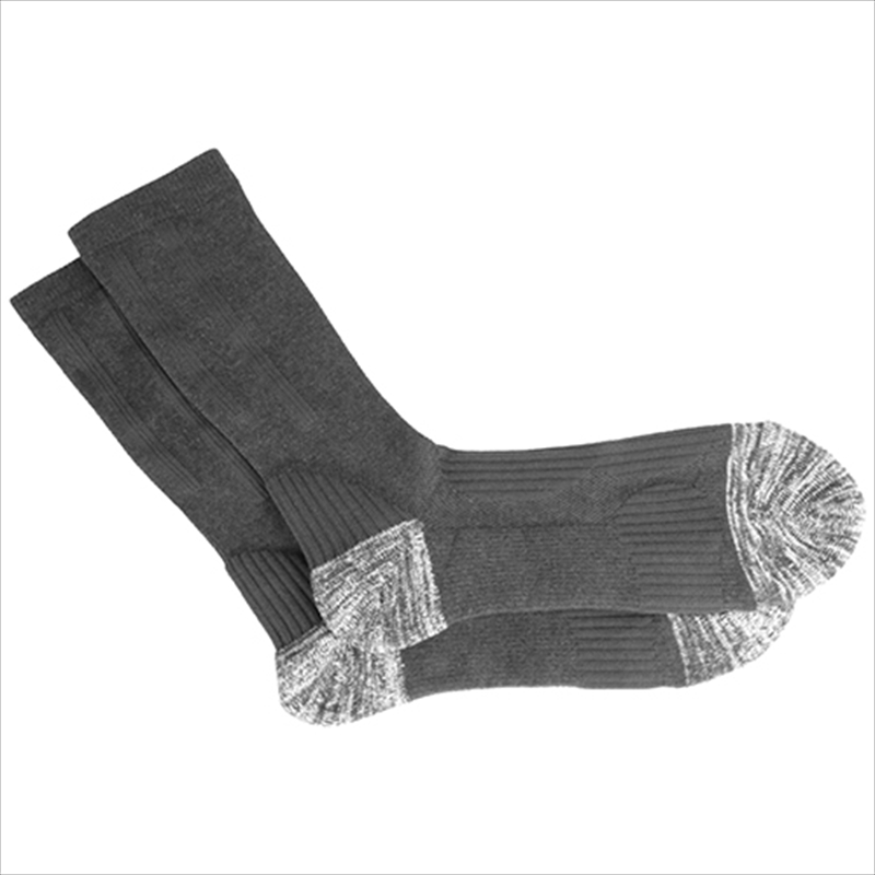あらゆる摩擦に耐える、スーパー繊維のダイニーマを使用した安全靴用靴下です。[用途]安全靴用疲労軽減ソックス。[機能]つま先・かかとの補強に採用した特殊繊維ダイニーマは、有機繊維としては最高レベルの強度を持ち、水に浮くほど軽量素材で、燃やしても有害物質を発生させない素材です。段階着圧設計で足の疲れを軽減します。通気性の良い特殊な編み方で、こもった汗や熱を逃し、常に快適な脚を維持します。甲、サイド、アキレスはクッション加工を施し、靴の締め付けから足を守り、疲れにくいです。安全靴だけでなく、登山やスポーツ、除雪作業等でも大活躍します。[仕様]●サイズ:25〜28cm。●色:グレー×グレー。●種類:ミドル。●着圧。●吸水速乾。●抗菌・防臭加工(ロンフレッシュ)。[材質]●綿・アクリル・その他。[注意事項]漂白剤は使用しないで下さい。手洗いを十分にして下さい。ぬるま湯で中性洗剤を使用して下さい。[その他]口ゴム部を上にして陰干ししてください。濃色物は淡色物と一緒に洗わないでください。素材の性質上、摩擦で他のものに色移りすることがあります。…