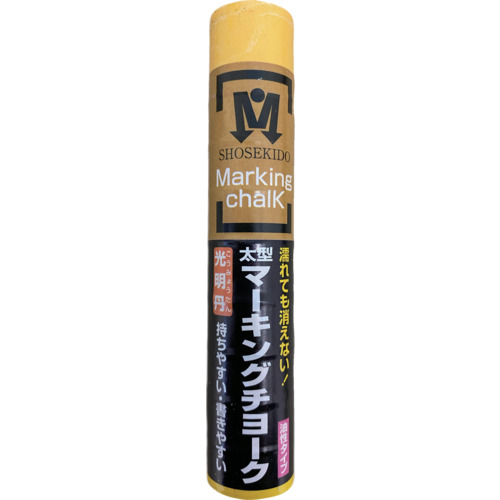 "●太くて折れにくい材木チョークです。<br>●石花マーキングチョークよりも色がつきやすく作っています。<br>●冬の寒さにも耐えられる「マーキングチョーク」です。車内等の高温環境・低温環境にも強く温度の変化にも対応させました。<br><br>●木材、道路表示、ブロック、コンクリート、鉄、石など。<br><br>●色:黄<br>●直径(mm):20<br>●長さ(mm):105<br>●筆記線幅(mm):20<br>●芯径(mm):20<br>●タイプ:油性<br>●奥行き(mm):20<br><br>●油性マーキングチョークです。<br>●石花マーキングチョークよりも色がつきやすく作っています。<br>●油性タイプで濡れても消えません。<br>●消すときは灯油やベンジンでこすってください。<br><br>●ワックス/顔料<br><br>…測定・計測用品 測量用品 建築用筆記具…"