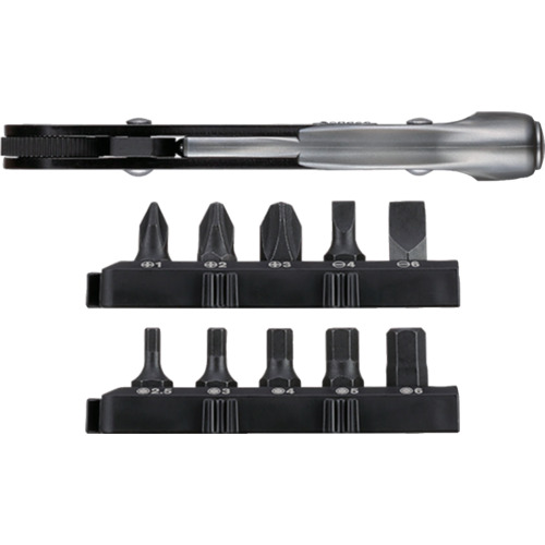 "●ギア60歯 わずかな振り6°でしっかり回せます。<br>●極薄20mm 狭い隙間作業にもしっかり使えます。<br>●ストレートタイプ。<br>●使いやすさを高める極短ビットです。<br><br>●二輪整備、自転車整備、機械整備、家庭用工具に<br><br>●セット内容:本体(ストレートタイプ)、ビット[[+]]1、 2、 3[[−]]4、 6、ソケットH2.5、 3、 4、 5、 6×18mm、ホルダー×2<br>●セット内容(点):13<br><br>●本体:ASSY ビット:ビット材<br><br>…手作業工具 ドライバー・六角棒レンチ ラチェット式ドライバー…"