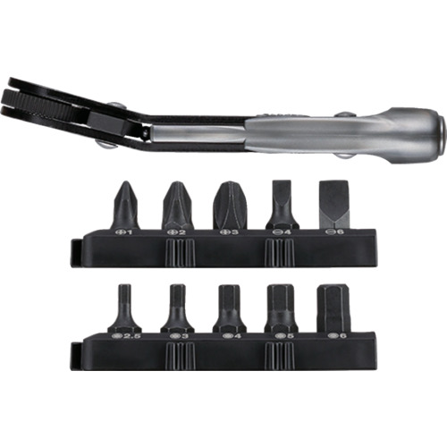 "●ギア60歯 わずかな振り6°でしっかり回せます。<br>●極薄20mm 狭い隙間作業にもしっかり使えます。<br>●ベンドタイプ。<br>●使いやすさを高める極短ビットです。<br><br>●二輪整備、自転車整備、機械整備、家庭用工具に<br><br>●セット内容:本体(ベンドタイプ)、ビット[[+]]1、 2、 3[[−]]4、 6、ソケット H2.5、 3、 4、 5、 6×18mm、ホルダー×2<br>●セット内容(点):13<br><br>●本体:ASSY ビット:ビット材<br><br>…手作業工具 ドライバー・六角棒レンチ ラチェット式ドライバー…"