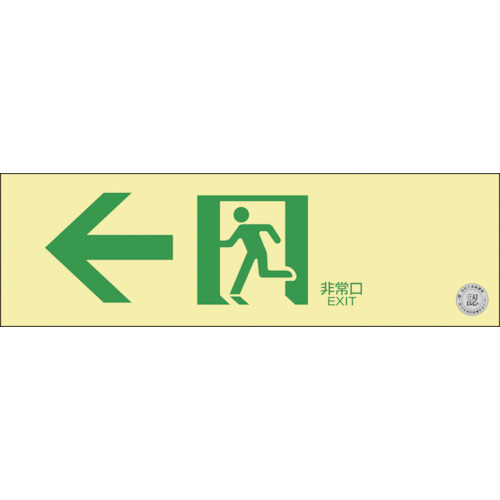 リョクジュウジ 緑十字 中輝度蓄光避難誘導ステッカー標識 ←非常口 TSN902 100×300 消防認定品 068012