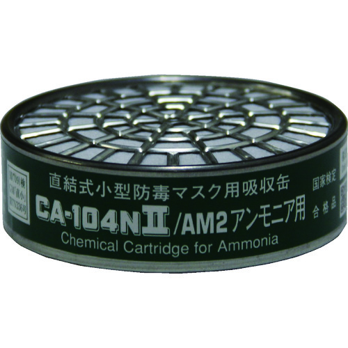 "●ホルムアルデヒド用吸収缶です。<br><br>●低濃度の有毒ガスの発生する作業用。(対象ガスに適応した吸収缶を使用)<br><br>●対象ガス:アンモニアガス<br>●国家検定区分:直結式小型<br>●国家検定合格番号:TN336<br>●破過時間(分):145<br>●規格値(分以上):40<br>●試験ガス:アンモニア<br>●試験濃度(%):0.1<br>●最高許容透過濃度(ppm):50<br>●適合機種:GM34T、GM76-S、GM76DS、GM70D、GM28S、GM185C<br><br>●国家検定合格品<br>●有害物質の環境濃度は0.1%(1000ppm)以下。<br>●適合マスク:GM34T、GM76-s、GM76DS、GM70D、GM28S、GM185C<br><br>●活性炭<br>●ブリキ<br>●ポリエチレン<br><br>…保護具 マスク・耳栓 防毒マスク…"