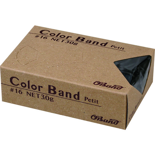 "●30g箱サイズのカラーバンドです<br>●引出しの中にも収納しやすいコンパクトサイズです。<br>●全10色のラインナップです<br><br>●包装用、結束用。<br><br>●色:ブラック<br>●番手(#):16<br>●切幅(mm):1.1<br>●折径(mm):60<br>●厚さ(mm):1.1<br>●箱入数(本):約200<br>●包装形態:箱入り<br><br>●内径(mm):38<br>●箱のサイズ(mm):L90×W59×H28<br><br>●天然ゴム<br><br>…梱包用品 梱包結束用品 ゴムバンド…"