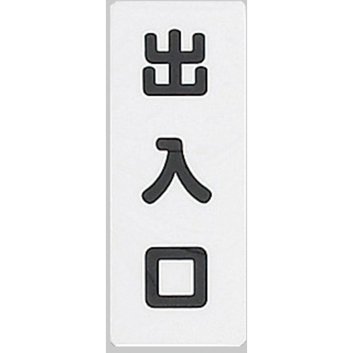 仕様・規格 | ● 表示内容:出入口 ● 取付仕様:粘着テープ ● 縦(mm):140 ● 横(mm):55 ● 厚さ(mm):1.5 ● 色:文字黒 プレート白 ● タイプ:粘着 ● 取付方法:貼付タイプ |