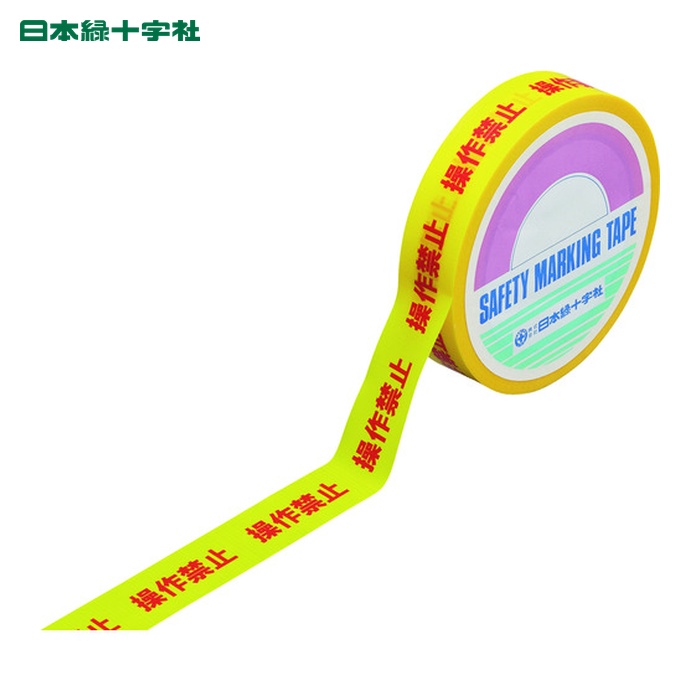 日本緑十字 標識テープ(粘着剤付) 操作禁止 HKT-3 25mm幅×25m 手切り可能タイプ 屋内用 PE (1巻) 品番:262133