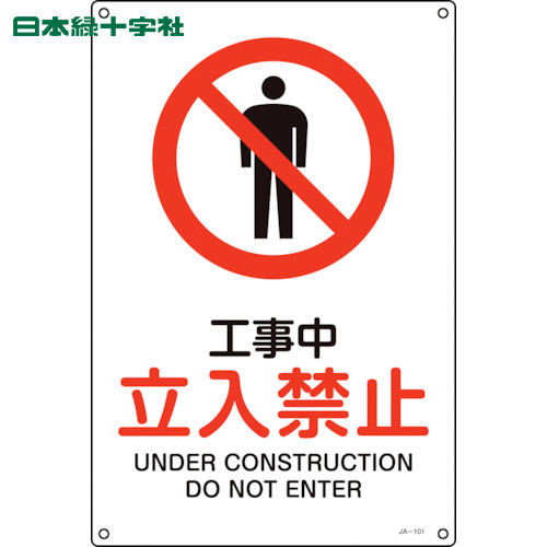 日本緑十字 安全標識 JIS規格安全標識 工事中・立入禁止 JA-101S 300×225mm エンビ (1枚) 品番:393101