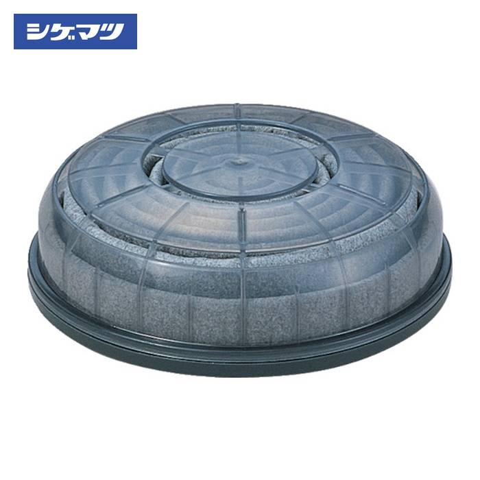 シゲマツ 防じんマスク用ろ過材|特長:撥水・撥油性のフィルタで、水はもちろん、油もはじきます。 活性炭素繊維(ACF)入りで、嫌な臭いを除去します。 シゲマツの水洗再生リターナブルシステムを導入すれば、フィルタが再使用でき経済的。