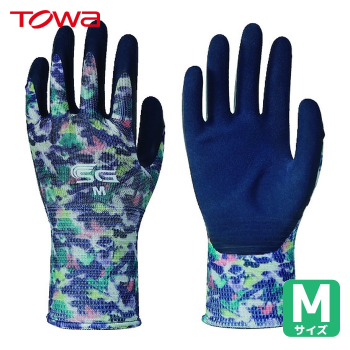 トワロン 天然ゴム背抜き手袋 SG−R102 ぼかし柄ブルー M (1双) 品番:SG-R102-M