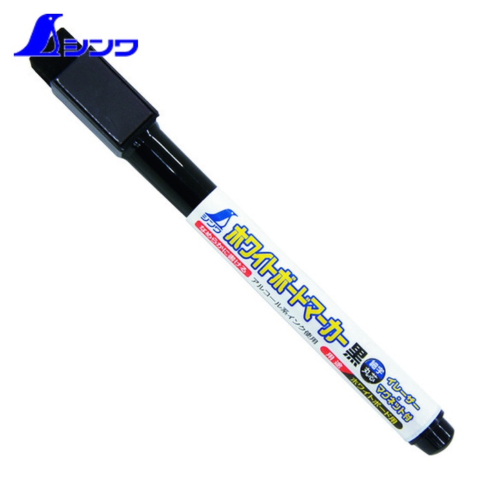 シンワ ボードマーカー|特長:細字仕様なので、狭い所への筆記に便利です。 キャップにイレーザー、マグネット付です。