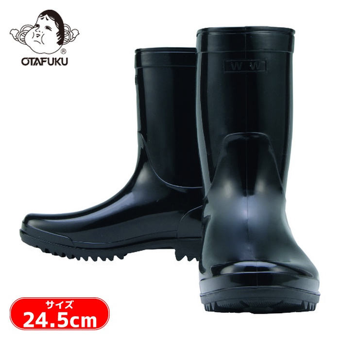 おたふく 長靴 先芯なし WW724 作業半長靴 黒 PVC 24.5cm (1足) 品番:WW724-245