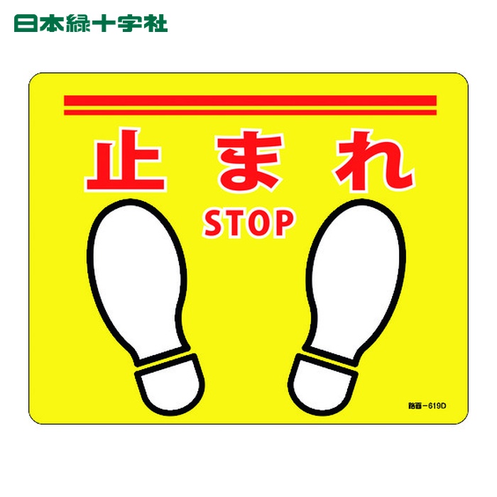 日本緑十字 路面標示ステッカー 止まれ・STOP 路面-619D 240×300mm 滑り止めタイプ PVC (1枚) 品番:101169
