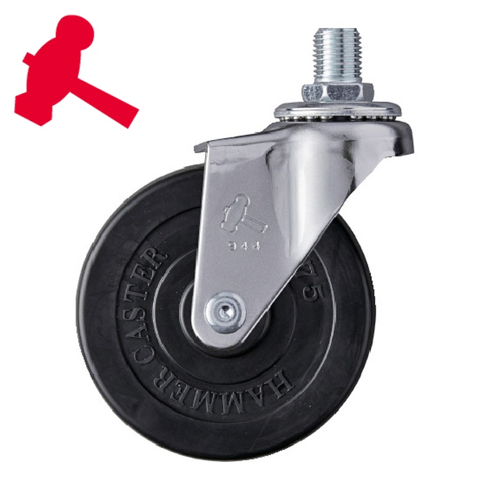 ハンマーキャスター ねじ込み旋回式ゴム車輪 75mm M12 (1個) 品番:420A-30R75