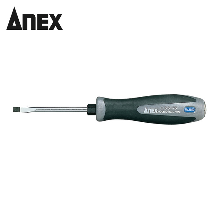 アネックス グリップドライバー|特長:先端形状はカムアウトしにくい構造になっており(プラスはACR[[R上]]・マイナスはギザ付)、ねじから刃先が浮き上がるのを防止します。 六角ボルスター付で、スパナを掛けてより強く回すことができます。