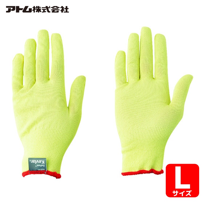 アトム アラミド手袋|特長:ホコリの原因となる毛羽立を抑えたケブラー[[R下]]長繊維を使用しています。 伸縮性ケブラー[[R下]]を使用しているため手にぴったりフィットします。 15ゲージの超薄手タイプです。
