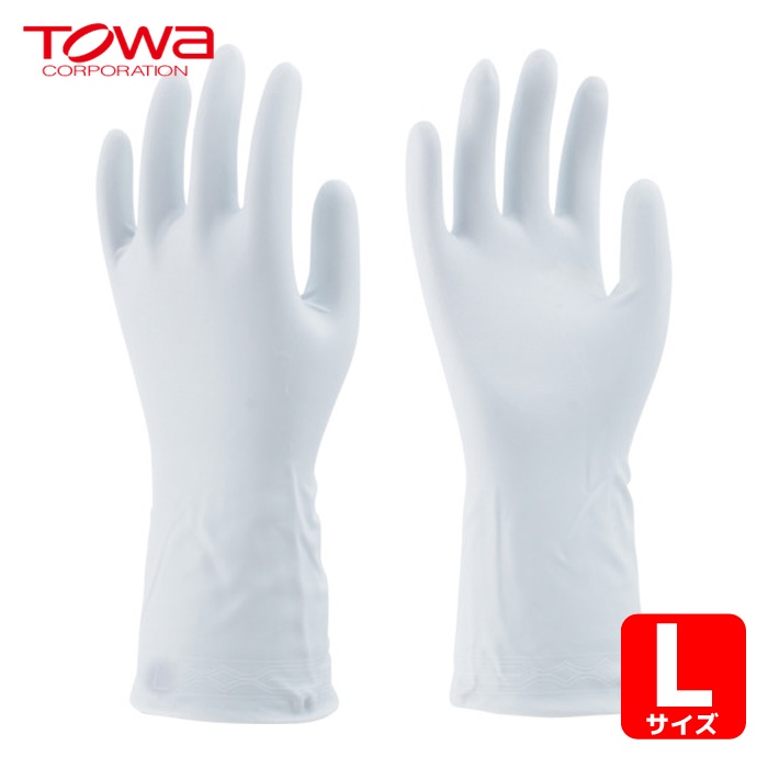 | 仕様・規格 | ● 色:ホワイト ● サイズ:L ● 全長(cm):30.0 ● 手のひら周り(cm):22.2 ● 中指長さ(cm):7.9 ● 厚さ(mm):0.27 ● すべり止め:あり ● 抗菌防臭加工 |