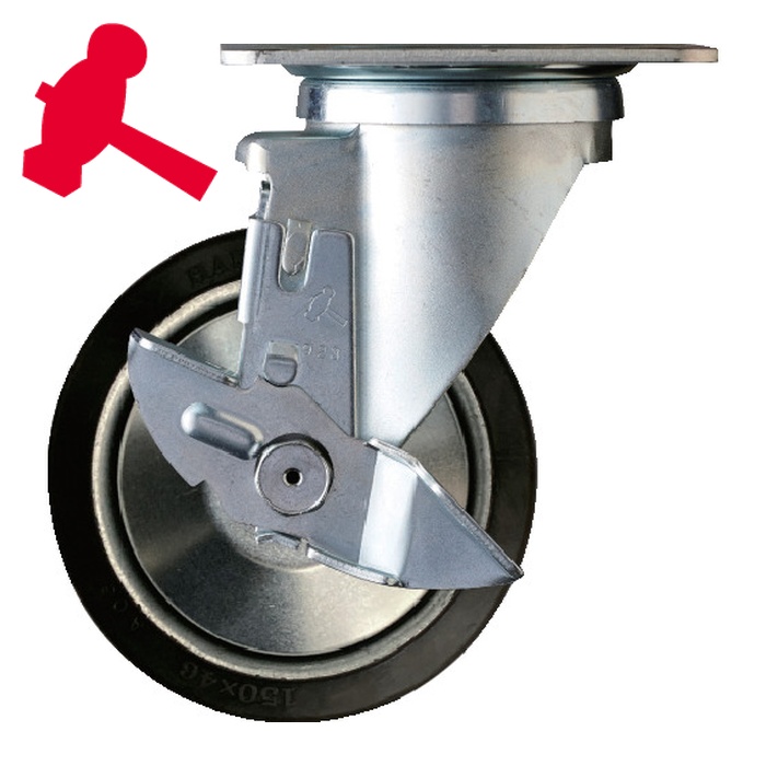 ハンマーキャスター 520型自在SP付焼入れ金具ゴム車 (1個) 品番:513YS-RB150