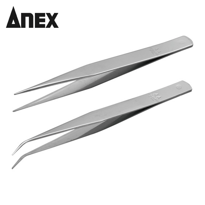 Anex アネックス ピンセット AA125mm 2本組 (直・先曲) (1袋) 品番:ATW-S3