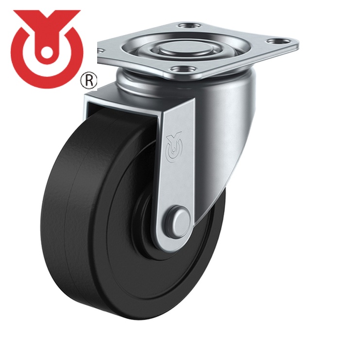 ユーエイ プレート式静電気対策キャスター(ゴム車)|特長:走行性・耐荷重を備えた標準的な小型キャスターです。 走行性に優れ、静電気を除去することができる導電性ゴム車輪を使用しています。