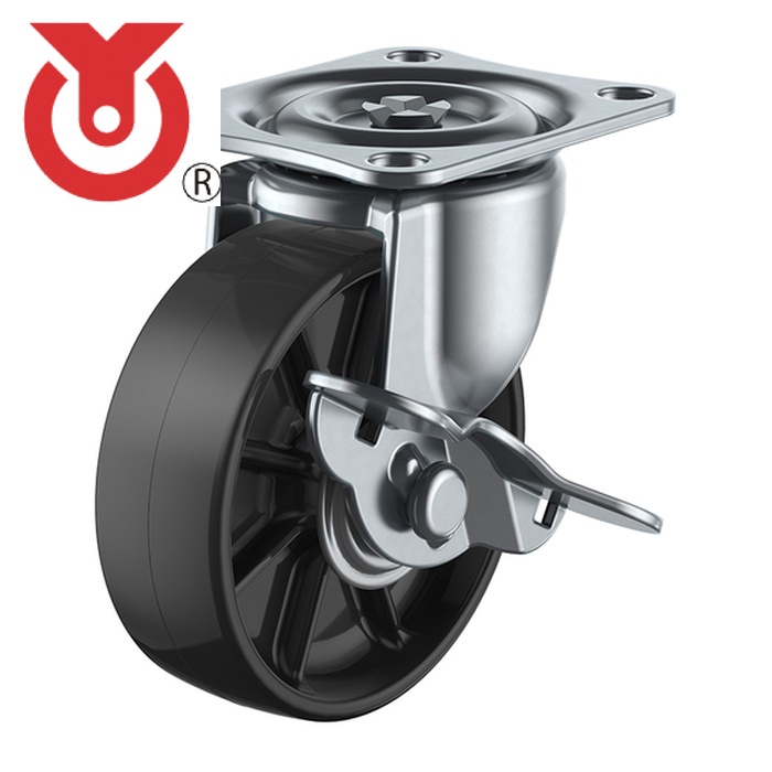 ユーエイ プレート式ナイロンキャスター|特長:標準的な小型キャスターで、最小サイズから取りそろえています。 耐摩耗性に優れたナイロン車輪を使用しています。