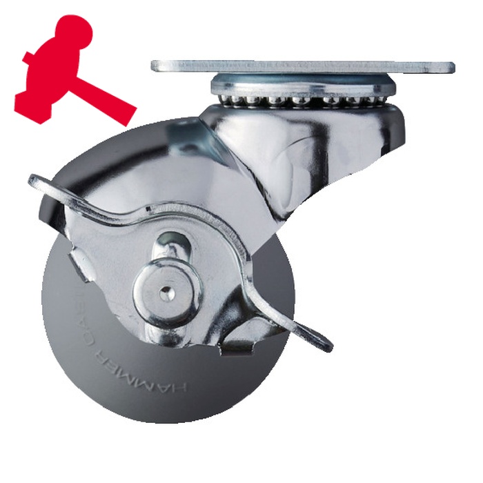ハンマー プレート式低床式キャスター(ウレタン車)|特長:ボール車輪形状のデザインキャスターです。 RoHS適合品です。