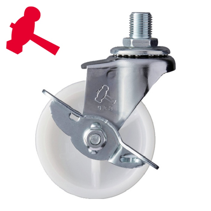 ハンマーキャスター ねじ込み旋回式ナイロン車輪 65mm M12 ストッパー付 (1個) 品番:415A-30N65