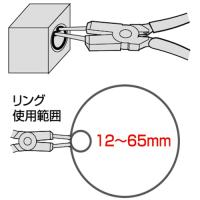 仕様・規格 | ● リング使用範囲(mm):12〜65 ● 爪先端径(mm):2.0 ● 全長(mm):183 ● 爪形状:直爪 ● ばね付 ● FS-L2付 |