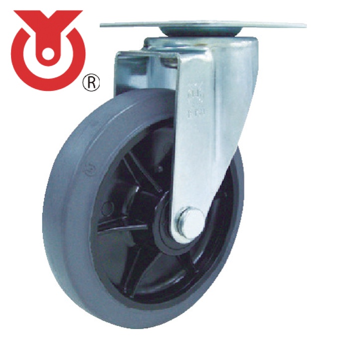 ユーエイ プレート式省音キャスター(ゴム車)|特長:静音タイプです。 床面を汚しにくいグレー車輪を使用しています。