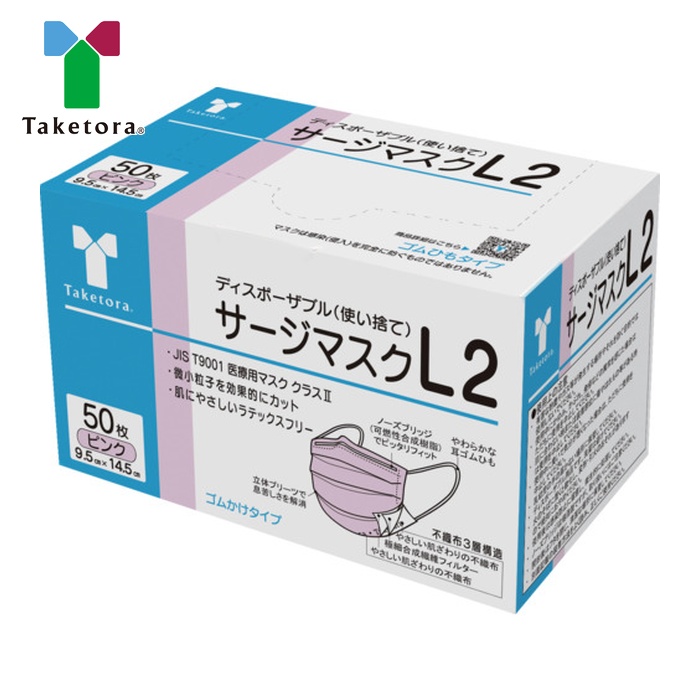 竹虎 サージカルマスク L2 ピンク (1箱) 品番:076264