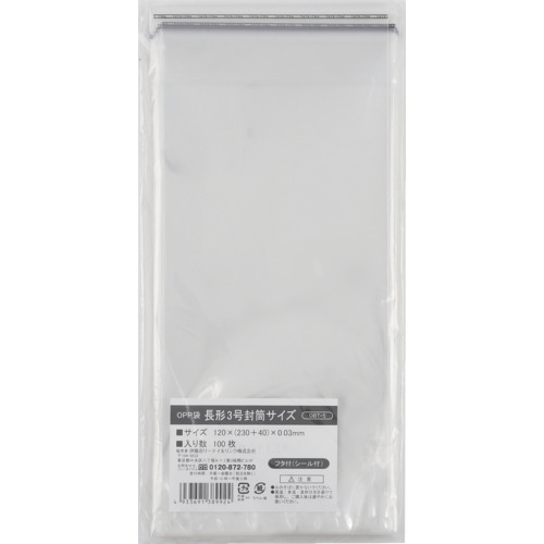 IRL OPP袋フタ付シール付き 長形3号封筒サイズ (1袋) 品番:OBT-5