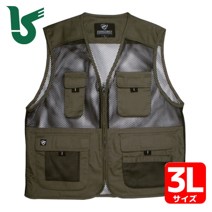 カジメイク 作業服 作業着 ユニフォーム メッシュベスト ダークグリーン 3L (1着) 品番:6628-57-3L