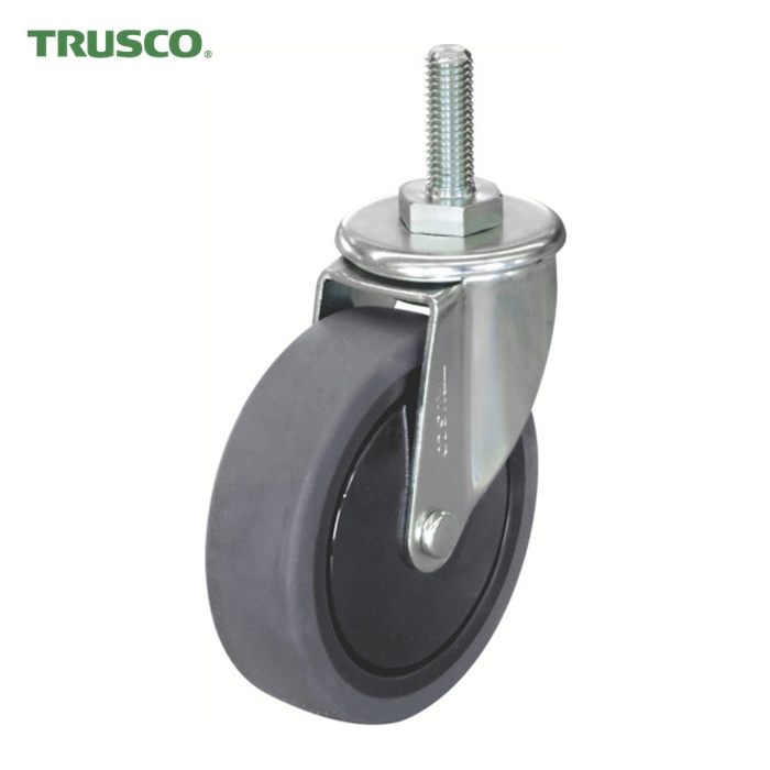 TRUSCO ねじ込み式省音キャスター(エラストマー車)|特長:車輪部にラジアルベアリングを採用していますので始動抵抗が低減し、音が静かです。 ゴム車より床に跡が付きにくい材質です。 ナイロン車より走行音が静かです。