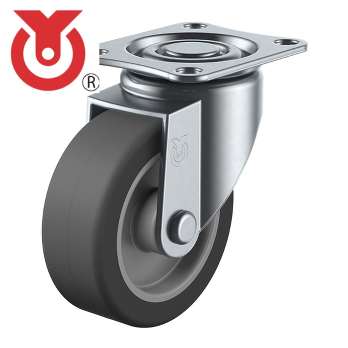ユーエイ プレート式エラストマーキャスター|特長:走行性・耐荷重を備えた標準的な小型キャスターです。 床面に跡が付きにくい材質です。 床面に汚しにくいエラストマー車輪を使用しています。