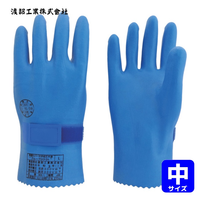 渡部工業 ワタベ 作業用手袋 絶縁手袋 保護カバー付き低圧手袋ブループロテクト AC300V/DC750V以下用 M (1双) 品番:506-M