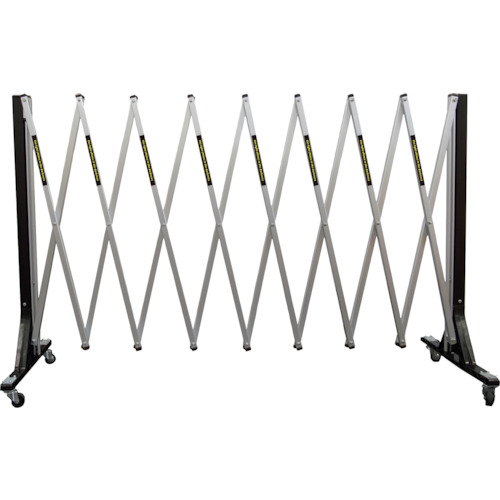安全興業 バリケードフェンス|特長:伸縮式で置くだけで簡単に設置できます。 軽いので持ち運びも楽にできます。 単管バリケードタイプと比べて、単管パイプの運搬やセットが不要です。