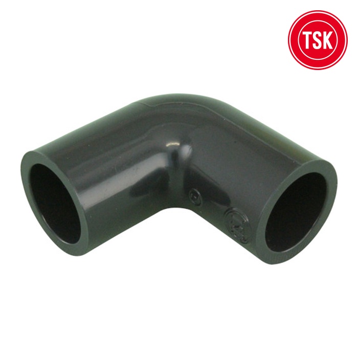 トーエー 塩ビ管HI継手(エルボ)|特長:普通の工具で簡単に切ったり削ったりできます。 パイプの接続は専用の接着剤で容易に接合でき、漏水の心配がありません。