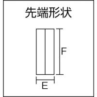 仕様・規格 | ● 全長(mm):200 ● 先端形状(mm)E×F:4.0×10.5 ● 口先の長さ(mm):33 ● ジョイント部の幅(mm):13.5 ● ジョイント部の厚さ(mm):10.5 ● 口先先端の幅(mm):10.5 ● 口先先端の厚さ(mm):4 ● 先端部ギザ付 ● ヘッド先端形状:平型 |