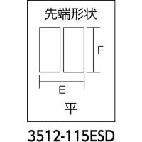仕様・規格 | ● 全長(mm):115 ● 厚さ(mm):6.5 ● A(mm):22.5 ● 先端形状:平 ● 先端形状(mm)E×F:2.0×4.0 ● ジョイント部の幅(mm):9.5 ● 口先先端の幅(mm):4.0 ● 口先先端の厚さ(mm):2 ● ヘッド部鏡面仕上げ |