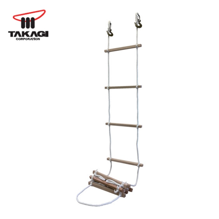 高木 避難用はしご|特長:耐候性、耐久性、耐熱性に優れたビニロンロープを使用し、耐荷重もあり安定しています。 ステップ幅も広く成人男性の使用も容易です。