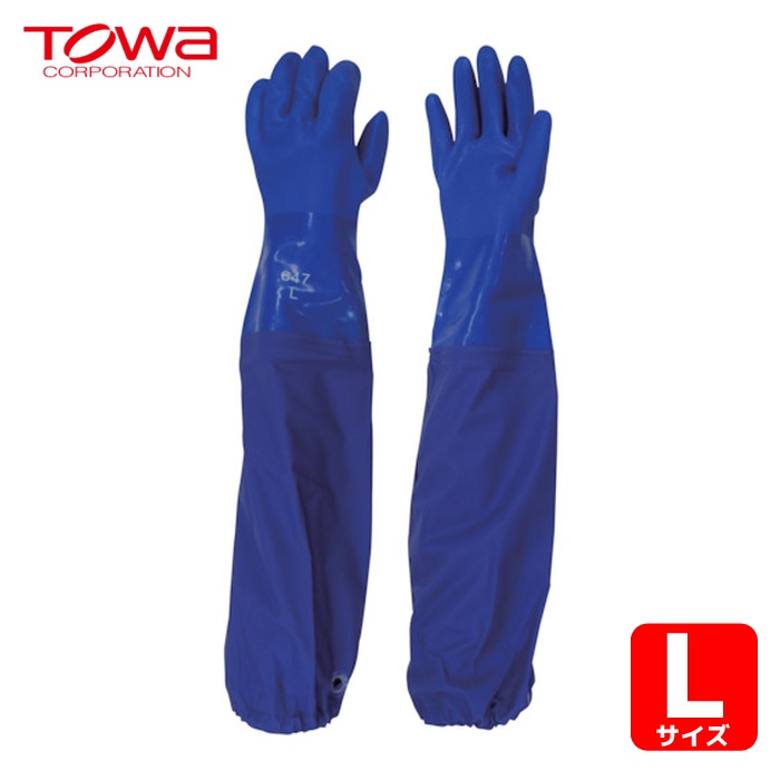 - 手袋に腕カバーを特殊溶着加工で一体化していますので、水などを伴う作業に適しています。