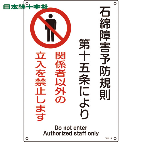 日本緑十字 アスベスト(石綿)関係標識 石綿障害予防規則・立入を禁止 アスベスト-25 450×300 (1枚) 品番:033025