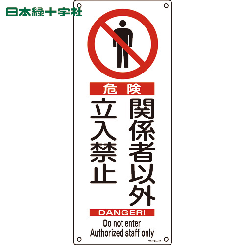 日本緑十字 アスベスト(石綿)関係標識 危険・関係者以外立入禁止 アスベスト-27 450×180mm (1枚) 品番:033027