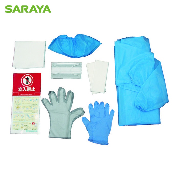 | 材質・仕上 | ● 使い捨て手袋:ニトリル、EVA ● 使い捨てガウン(袖付き):ポリエチレン(PE) ● 使い捨てマスク:ポリプロピレン(PP) ● 使い捨てシューズカバー:ポリエチレン(PE) ● ポリ袋(回収袋):ポリエチレン(PE) ● ペーパータオル:紙 |
