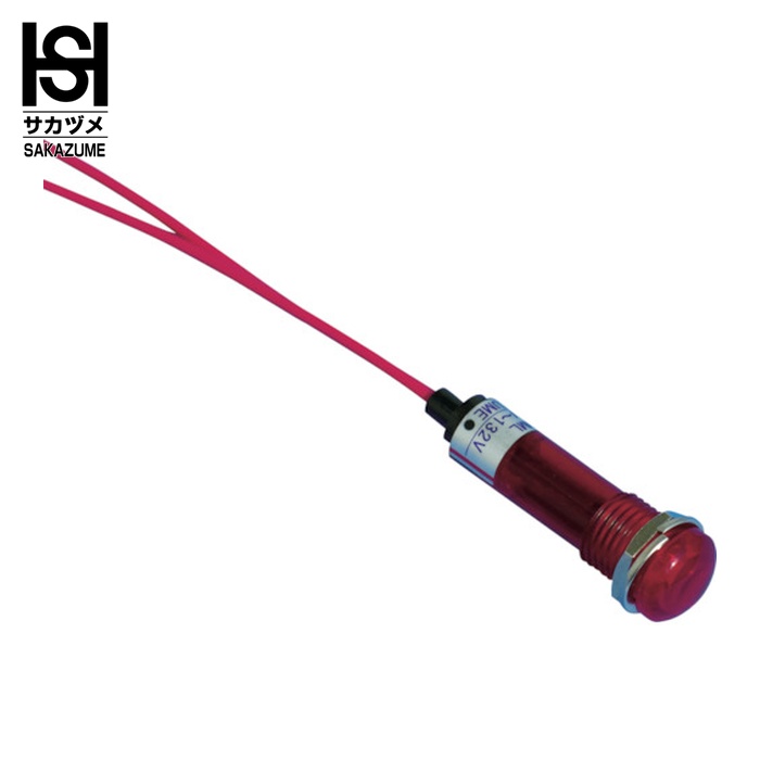 サカヅメ LED表示灯|特長:抵抗器内蔵の高輝度LED表示灯です。 AC/DC200V用電源にダイレクトに接続出来ます。 長さ200mmのリード線付です。