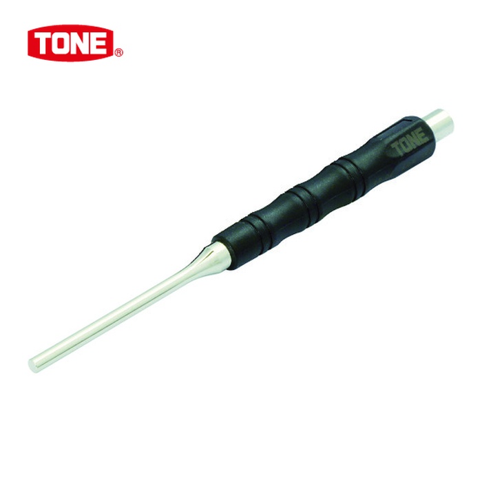 TONE 平行ピンポンチ|特長:平行ピン・スプリングピン・テーパーピンの抜き差し作業に最適です。 握りやすく、すべりにくい凹凸形状グリップです。 転がりにくい六角形状です。