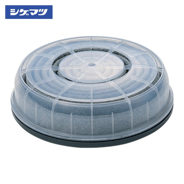 シゲマツ 防毒マスク用パーツ|特長:高面積で呼吸が楽な長時間向きのフィルタです。 撥水・撥油性のフィルタで、水はもちろん、油もはじきます。 活性炭素繊維(ACF)入りで、不快な臭気を除去します。