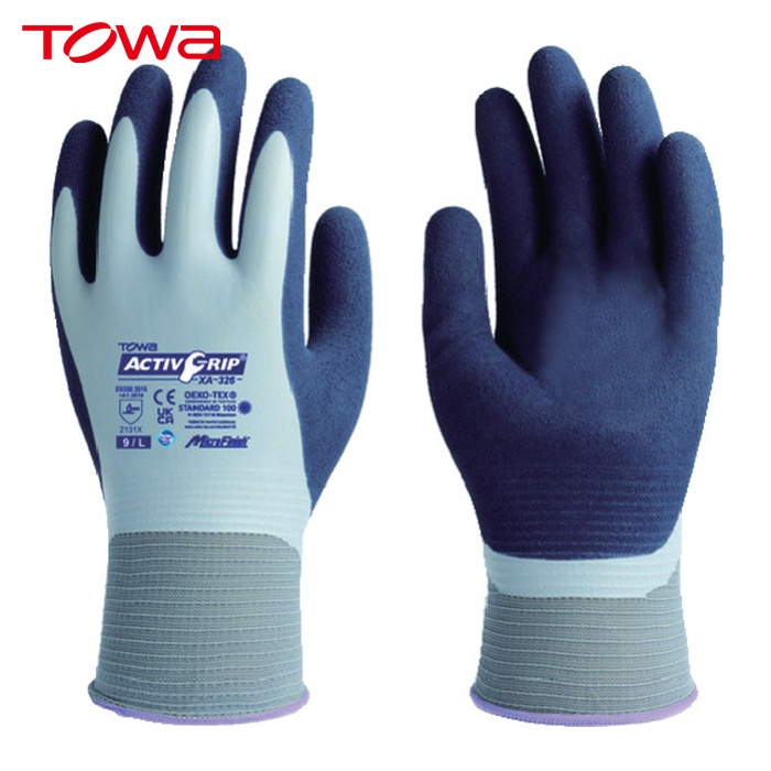 東和 トワロン 作業手袋 天然ゴム手袋 アクティブグリップXA-326 9/L (1双) 品番:XA-326-9L