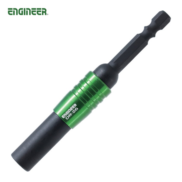ENGINEER ビットホルダ|特長:コーナーや壁際のネジもはずせる極短ビット用ユニバーサルジョイント。 全長18mmの極短ビットが使えるマグネット式保持構造。 中折れ式で15度傾けることができます。