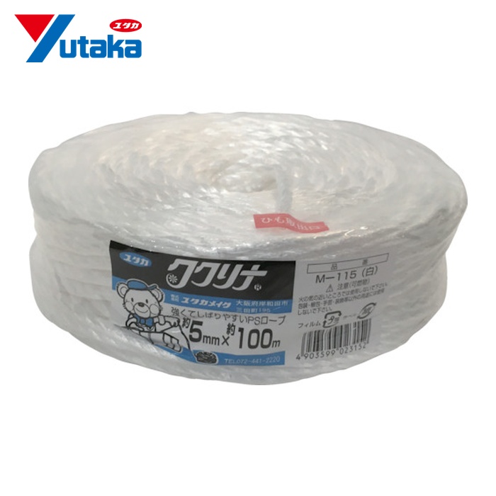 ユタカメイク 荷造り紐 PSロープ 5mm×100m 白 (1本) 品番:M-115 W