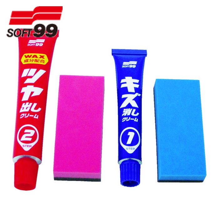 - ちょっとしたキズ、くすみや汚れの固着など、塗装面のトラブルを手軽に解消できる中細タイプの「キズ消しクリーム」と、極細タイプの「ツヤ出しクリーム」の2種類のセットです。